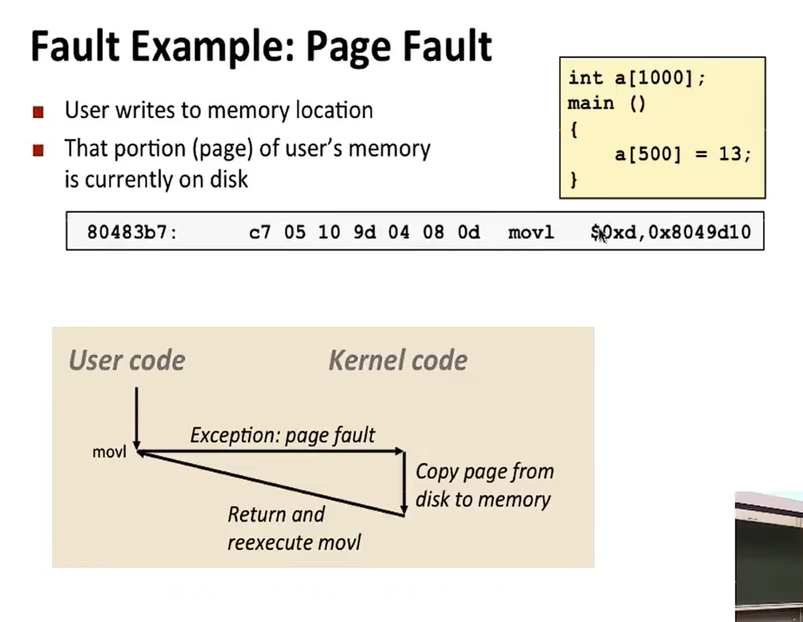 异常:将控制权从用户代码交给操作系统内核态中的代码
